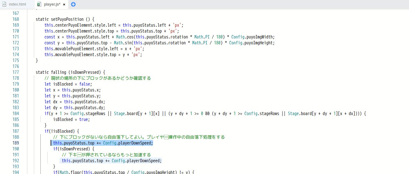 いま指定したコードを入力してないので、ぷよが降ってません。